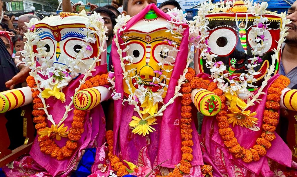 এস এম আলম, ২৭ জুন: যথাযথ ধর্মীয় ভাবগাম্ভীর্য, ব্যাপক উৎসাহ-উদ্দীপনা আর আনন্দঘন পরিবেশের মধ্য দিয়ে পাবনায় অনুষ্ঠিত হয়েছে হিন্দু ধর্মাবলম্বীদের অন্যতম ধর্মীয় উৎসব রথযাত্রা। শুক্রবার বিকেলে বর্ণাঢ্য আয়োজনের মধ্য দিয়ে শহরের শালগাড়িয়া শ্রী শ্রী জয়কালী মন্দির থেকে এবং এর কিছু সময় পরে ঐতিহ্যাবাহী রাধানগর রথঘর থেকে আলাদাভাবে দুটি রথযাত্রা বের করা হয়। রথযাত্রা দুটি শহরের প্রধান সড়ক আব্দুল হামিদ সড়ক প্রদক্ষিণ করে। হিন্দু ধর্মাবলম্বী বিভিন্ন বয়সের শত শত নারী-পুরুষ রথযাত্রায় অংশগ্রহণ করে রথ টেনে নিয়ে যান। রথযাত্রায় উপস্থিত ছিলেন বাংলাদেশ পূজা উদযাপন পরিষদ পাবনা সদর উপজেলার সভাপতি প্রভাষ ভদ্র, পূজা উদযাপন পরিষদ পাবনা জেলা শাখার যুগ্ম সাধারন সম্পাদক অচিন্ত কুমার ঘোষ, আহবায়ক শ্রী শ্রী জয়কালীবাড়ি মন্দির শুভ সান্যাল, পৌর শাখার সাধারন সম্পাদক দিপঙ্কর সরকার জিতু সহ নেতৃবৃন্দ। এদিকে, পাবনার বিভিন্ন উপজেলাতেও যথাযোগ্য মর্যাদায় রথযাত্রা উৎসব অনুষ্ঠিত হয়েছে। উৎসব উপলক্ষে বিভিন্ন মন্দির প্রাঙ্গণে নানা পসরা নিয়ে বসে গ্রামীণ মেলা।
