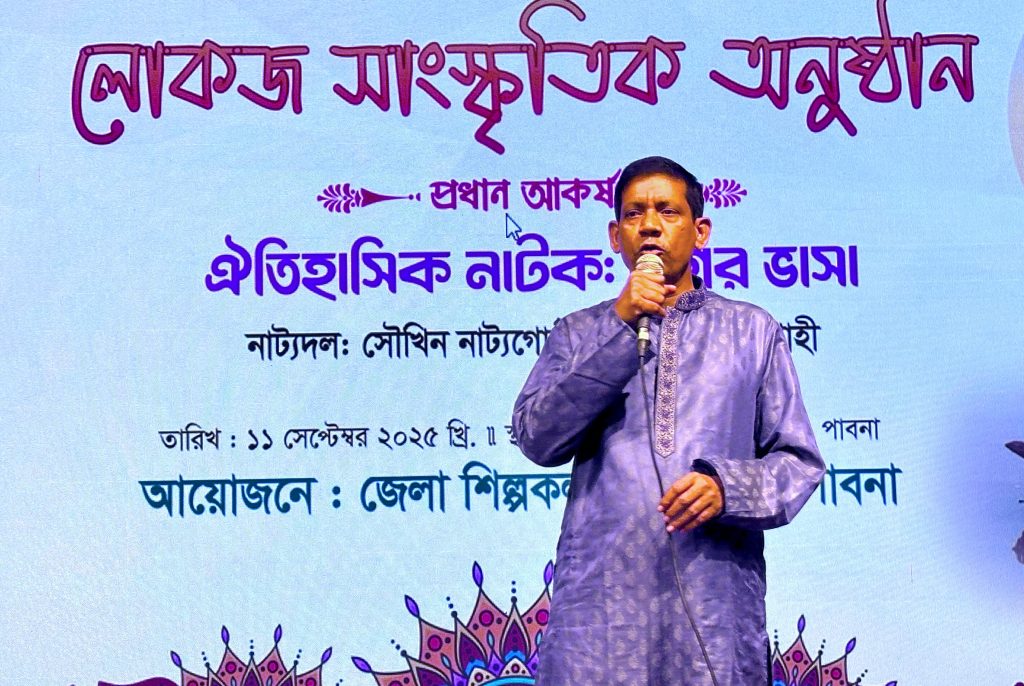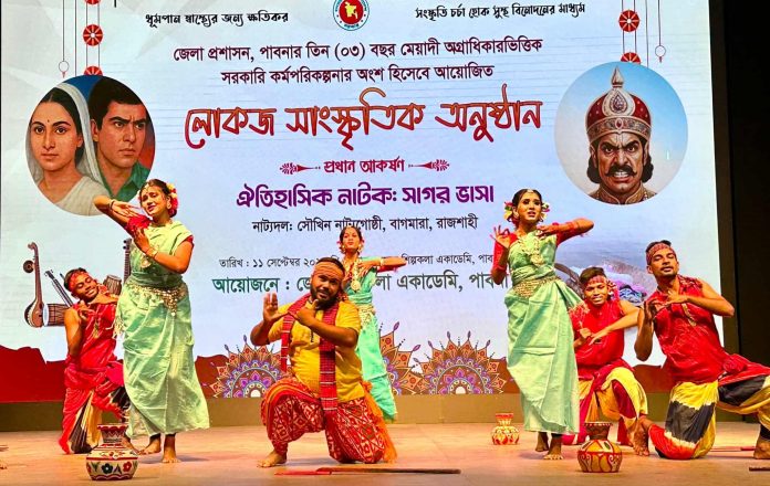 এস এম আলম, ১১ সেপ্টেম্বর: পাবনায় জেলা প্রশাসন পাবনার তিন (০৩) বছর মেয়াদী অগ্রাধিকারভিত্তিতে সরকারি কর্মপরিকল্পনার অংশ হিসেবে আয়োজিত দুই দিনব্যাপী লোকজ সাংস্কৃতিক অনুষ্ঠান শুরু হয়েছে। অনুষ্ঠানের উদ্বোধন করেন প্রধান অতিথি জেলা প্রশাসক মোহাম্মদ মফিজুল ইসলাম। প্রথম দিনের অনুষ্ঠানে লোকজ নৃত্য পরিবেশন করেন নববেশ নৃত্যাঙ্গন, গন্তব্য, জাসাস, শিল্পকলা একাডেমির নৃত্যশিল্পীবৃন্দ সহ আরো অনেকে। দুই দিনব্যাপী এ আয়োজনে আরো রয়েছে পাবনা সংস্কৃতি কেন্দ্রের পরিবেশনায় জারি গান ও জাসাস সহ বাউল শিল্পীদের কন্ঠে বাউল সঙ্গীত। পাবনা জেলার সাংস্কৃতিক উৎকর্ষ সাধন ও সুস্থ ধারার বিনোদনের মাধ্যমে মাদকমুক্ত সমাজ গঠনের প্রত্যয়ে আয়োজিত এ অনুষ্ঠানের সমাপ্তি ১২ সেপ্টেম্বর ২০২৫ তারিখ।