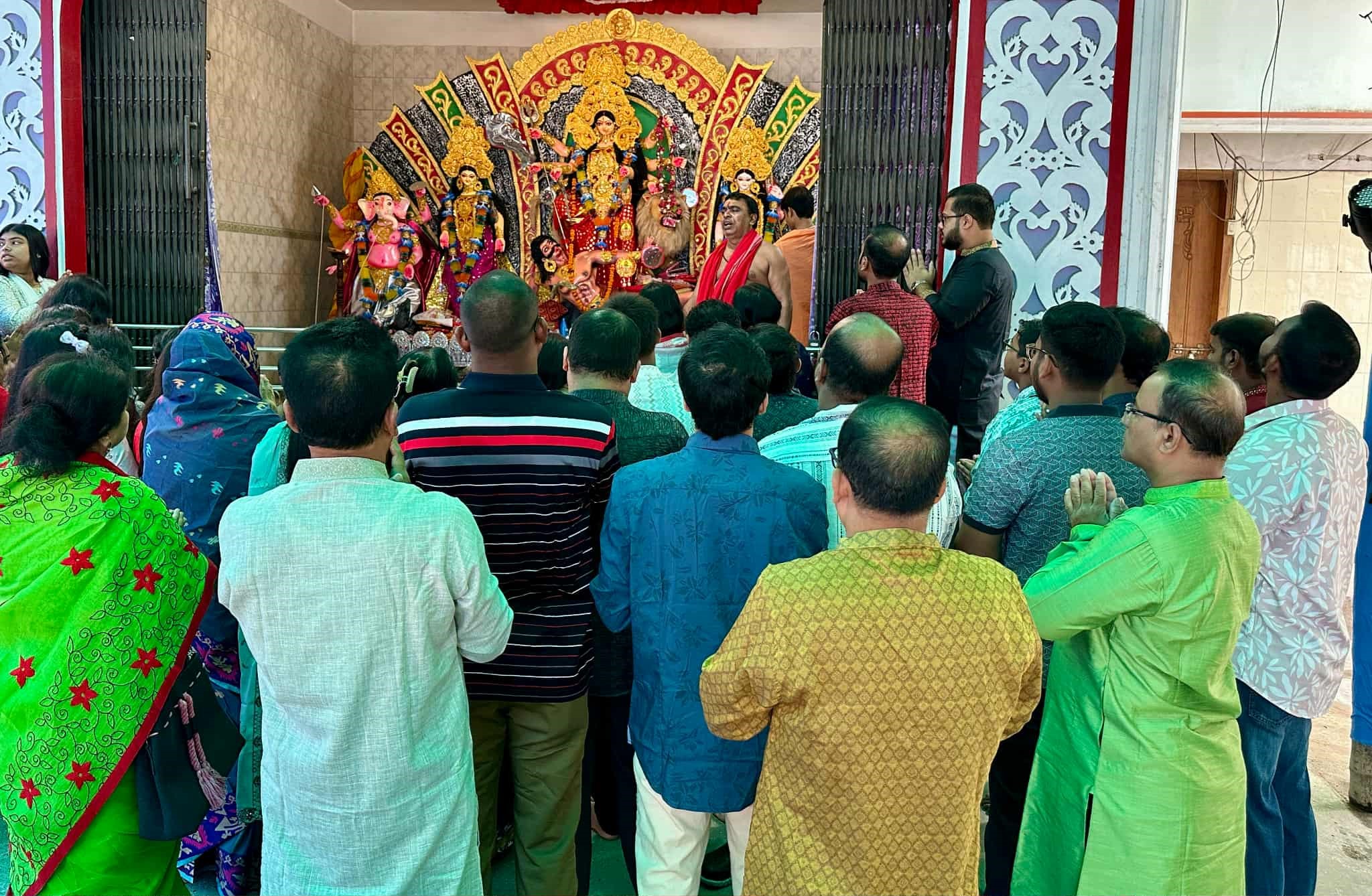 এস এম আলম, ১ অক্টোবর: সনাতন ধর্মাবলম্বীদের সবচেয়ে বড় উৎসব শারদীয় দুর্গাপূজার চতুর্থ দিন আজ মহানবমী নবমীতে বিশেষ কোনো পর্ব না থাকলেও সকালে পাবনার শ্রী শ্রী জয়কালি বাড়ি, মা মন্দির, রামকৃষ্ণ সেবাশ্রম সহ সকল মন্দিরগুলোতে তর্পণে দুর্গার মহাস্নান, ষোড়শ উপচারে পূজা করা হয়। নবমীর সন্ধ্যায় দেবী দুর্গার মহাআরতি করা হয়। এসময় উপস্থিত ছিলেন শ্রী শ্রী জয়কালীবাড়ি মন্দিরের আহবায়ক গৌরাঙ্গ মজুমদার, দুর্গাপূজা পরিচালনা কমিটি শ্রী শ্রী রামকৃষ্ণ সেবাশ্রম অচিন্ত কুমার ঘোষ, শ্রী শ্রী জয়কালীবাড়ি মন্দিরের সদস্য শুভ সান্যাল, শ্রী শ্রী জয়কালীবাড়ি মন্দিরের সদস্য খোকন বিশ্বাস সহ ভক্তবৃন্দ। পঞ্চমীতে বোধন এবং ষষ্ঠী তিথিতে আমন্ত্রণ-অধিবাস ও ষষ্ঠীবিহিত পূজার মধ্যদিয়ে শুরু হওয়া সনাতন ধর্মাবলম্বীদের সবচেয়ে বড় ধর্মীয় অনুষ্ঠান শারদীয় দুর্গোৎসবের শেষ হবে বৃহস্পতিবার দশমির মধ্যদিয়ে।