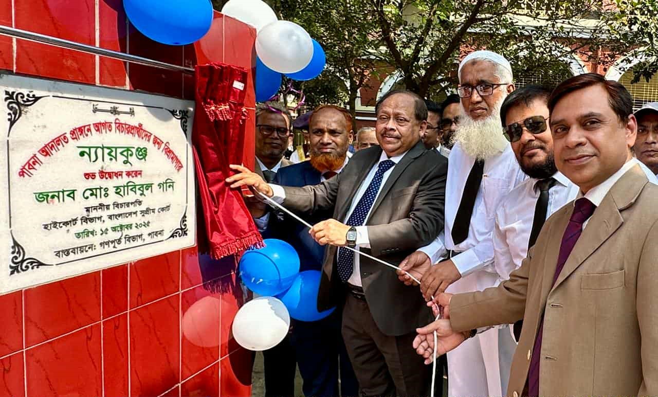 এস এম আলম, ১৫ অক্টোবর: পাবনা জজ কোর্টে ন্যায়কুঞ্জ উদ্বোধন করলেন বিচারপতি হাবিবুল গনি। সকালে পাবনা জেলা ও দায়রা জজ কোর্ট আদালত প্রাঙ্গনে আগত বিচারপ্রার্থীদের জন্য বিশ্রামাগার “ন্যায়কুঞ্জ” এর ফলক উম্মোচন ও ফিতা কেটে শুভ উদ্বোধন করেন বাংলাদেশ সুপ্রীম কোর্টের হাইকোর্ট বিভাগের মাননীয় বিচারপতি মোঃ হাবিবুল গনি। এই সময় উপস্থিত ছিলেন পাবনা জেলা ও দায়রা জর্জ মো: আখতারুজ্জামান, নারী ও শিশু নির্যাতন দমন ট্রাইবুনালের বিচারক মো: নুরে আলম, বিশেষ জর্জ আবু সালেহ মো: সালাহউদ্দিন খাঁ, চিফ জুডিসিয়াল ম্যাজিস্ট্রেট মো: ফেরদৌস ওয়াহিদ, পাবনা গণপূর্ত বিভাগের নির্বাহী প্রকৌশলী মো: রাশেদ কবির, জেলা আইনজীবী সমিতির সভাপতি আলহাজ্ব আবুল কালাম আজাদ বাচ্চু, সাধারণ সম্পাদক সুলতান মাহমুদ খান এহিয়া, জেলা জজ কোর্টের পিপি গোলাম সারওয়ার খান জুয়েল, অতিরিক্ত জেলা ও দায়রা জজ মোঃ মাহমুদ হাসান, অতিরিক্ত জেলা ও দায়রা জজ তানবীর আহমেদ, যুগ্ম জেলা ও দায়রা জজ মোঃ আফতাবুজ্জামান, যুগ্ম জেলা ও দায়রা জজ অর্থঋণ মোঃ জিয়ারুল ইসলাম, সিনিয়র সহকারী জজ জেলা লিগ্যাল এইড অফিসার মোঃ আজহারুল ইসলাম, সহকারী জজ সঞ্চিতা ইসলাম, সহকারী জজ মাসুমা রহমান, সহকারী জজ নওরিন জামান স্নিগ্ধা, সহকারী জজ মোসাঃ শাম্মী আক্তার, অতিরিক্ত চীফ জুডিসিয়াল ম্যাজিস্ট্রেট মোঃ মোরশেদুল আলম, ম্যাজিস্ট্রেট (যুগ্ম জেলা ও দায়রা জজ) মিটফুল ইসলাম, সিনিয়র জুডিসিয়াল ম্যাজিস্ট্রেট মোঃ মুস্তাফিজুর রহমান, সিনিয়র জুডিসিয়াল ম্যাজিস্ট্রেট বেগম রুবাইয়া আক্তার, সিনিয়র জুডিসিয়াল ম্যাজিস্ট্রেট বেগম বেবী নাজনীন, সিনিয়র জুডিসিয়াল ম্যাজিস্ট্রেট মোহাম্মদ শিহাব উদ্দিন, সিনিয়র জুডিসিয়াল ম্যাজিস্ট্রেট মোঃ তরিকুল ইসলাম, সিনিয়র জুডিসিয়াল ম্যাজিস্ট্রেট বেগম ফারহানা হক ইয়ামীম, জুডিসিয়াল ম্যাজিস্ট্রেট মোঃ আনারুল ইসলাম সহ গন্যমান্য ব্যক্তিবর্গ। উদ্বোধনী অনুষ্ঠান সঞ্চালনা করেন সিনিয়র সহকারী জজ তানজিনা আক্তার ও দোয়া পরিচালনা করেন সিনিয়র জুডিসিয়াল ম্যাজিস্ট্রেট মো: মুস্তাফিজুর রহমান। ন্যায়কুঞ্জ নির্মাণ করেন পাবনা গণপূর্ত বিভাগ। উদ্বোধন শেষে বিচারপতি জর্জ কোটে নব নির্মিত তথ্য ও সেবা কেন্দ্র পরিদর্শন করেন।