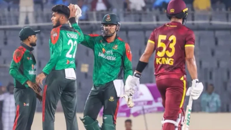 এর আগে একটা সময় মনে হচ্ছিল, ওয়েস্ট ইন্ডিজের রান দুইশর ঘরে গিয়ে ঠেকবে। ১১ ওভার শেষে ১ উইকেটেই ছিল ১০৬। সেখান থেকে দারুণভাবে দলকে লড়াইয়ে ফিরিয়েছেন রিশাদ-নাসুমরা। ফলে দেড়শও করতে পারেনি ওয়েস্ট ইন্ডিজ, ৯ উইকেটে ১৪৯ রানে থেমেছে তারা।টস হেরে বোলিংয়ে দারুণ শুরু করেছিল বাংলাদেশ। প্রথম ওভারে প্রথম বলেই উইকেট পেতে পারতেন তানজিম হাসান সাকিব। ব্রেন্ডন কিংয়ের খোঁচা মারা বল ডাইভ দিয়ে হাতেই পেয়েছিলেন উইকটেরক্ষক লিটন দাস।কিন্তু বাংলাদেশ দলপতি সেই ক্যাচ ফেলে দেন। ফলে প্রথম ওভারে বেঁচে যায় ওয়েস্ট ইন্ডিজ। ওই ওভারে সাকিব দেন মাত্র ১ রান।