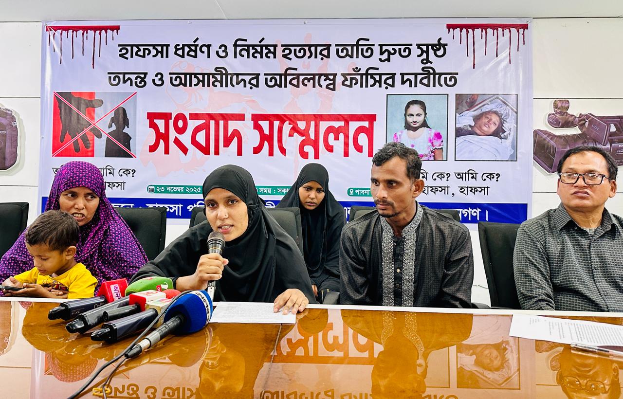 পাবনায় শিশু শিক্ষার্থী হাফসা খাতুন ধর্ষন ও হত্যার প্রতিবাদে বিক্ষোভ মিছিল, প্রতিবাদ সমাবেশ ও সংবাদ সম্মেলন