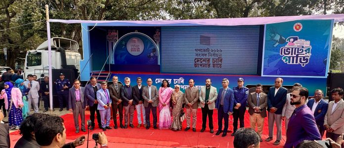 এস এম আলম, ১৯ জানুয়ারি: গণভোটের বিষয়ে পাবনা জেলায় সার্কিট হাউসে মতবিনিময় সভায় জেলা প্রশাসক শাহেদ মোস্তফার সভাপতিত্বে প্রধান অতিথির বক্তব্য দেন উপদেষ্টা স্বাস্থ্য ও পরিবার কল্যাণ মন্ত্রণালয় নুরজাহান বেগম। বিশেষ অতিথির বক্তব্য দেন স্বাস্থ্য ও পরিবার কল্যাণ মন্ত্রণালয়ের সচিব সাইদুর রহমান, জেলা পুলিশ সুপার আনোয়ার জাহিদ, জেলা সিভিল সার্জন ডা. আবুল কালাম আজাদ, জেলা পরিষদের প্রধান নির্বাহী কর্মকর্তা মাহফুজা সুলতানা, পাবনা এডওয়ার্ড কলেজের অধ্যক্ষ ড. মো: আব্দুল লতিফ, প্রফেসর মো: লুৎফর রহমান সহ পাবনা জেলার সরকারি কর্মকর্তাবৃন্দ ও প্রিন্ট ইলেকট্রনিক্স মিডিয়ার সাংবাদিকবৃন্দ। পরে পাবনা এডওয়ার্ড কলেজে মাঠ ও পাবনা মানসিক হাসপাতালে গণভোট নিয়ে প্রচার গাড়ি ও কার্যক্রম পরিদর্শন করা হয়।