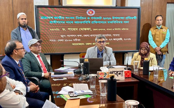 এস এম আলম, ২৭ জানুয়ারি: পাবনা ১ ও ২ আসন সীমানা জটিলতায় বন্ধ হওয়া ০১ সাঁথিয়া ও ০২ (সুজানগর -বেড়া) নির্বাচনী এলাকার নির্বাচনে অংশগ্রহণকারী দলের ও সতন্ত্র প্রার্থীদের মধ্যে প্রতিক বরাদ্দ করেন জেলা প্রশাসক ও জেলা রিটার্নিং অফিসার প্রশাসক ড. শাহেদ মোস্তফা। দুপুরে জেলা প্রশাসকের কার্যালয়ে কনফারেন্স হলরুমে আনুষ্ঠানিক ভাবে প্রতিক প্রার্থীদের হাতে তুলে দেয়া হয়। পাবনা-১ আসনে মনোনয়ন দাখিল করেছিলেন ৭ জন। এর মধ্যে বিএনপি সমর্থিত দুইজন সাবেক তথ্য প্রতিমন্ত্রী আধ্যাপক আবু সাঈদ ও খাইরুন নাহার খানাম তাদের প্রার্থীতা প্রত্যাহার করে নেন। সর্বশেষ যারা নির্বাচনে অংশগ্রহণ করছেন তারা হলেন বিএনপির ধানের শীষ প্রতীক নিয়ে নির্বাচন করছেন শামসুর রহমান ভিপি শামসুর, দাঁড়িপাল্লা প্রতিক নিয়ে সাবেক জামায়াতে আমির প্রয়াত মতিউর রহমানের ছেলে নাজিবুর রহমান মমিন, সতন্ত্র মোটরসাইকেল প্রতিক নিয়ে নির্বাচন করছেন তাইজুল ইসলাম, ইসলামী আন্দোলনের আব্দুল গনি হাতপাখা। ০২ আসনে ধানের শীষ প্রতীক নিয়ে নির্বাচন করছেন এ কে এম সেলিম রেজা হাবিব, জামায়াত ইসলাম থেকে মোঃ হেসাব উদ্দিন দাঁড়িপাল্লা, নাঙ্গল প্রতীক নির্বাচন করছেন জাতীয় পার্টির মেহেদী হাসান রুবেল, আফজাল হোসেন খান কাসেমী ইসলামী আন্দোলনের হাতপাখা, শেখ নাসির উদ্দিন গণফোরাম উদীয়মান সূর্য। পাবনা এক আসন থেকে ৪ জন আর ২ আসন থেকে ৫ জন করছেন। প্রতিক বরাদ্দের পরে প্রার্থী ও প্রস্বাবক সমর্থকদের নিয়ে নির্বাচনের আচরণ বিধিনিয়ে মত বিনিময় করেন জেলা রিটার্নিং অফিসার ড. শাহেদ মোস্তফা।