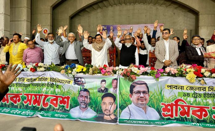 পাবনাস্থ ১২টি বেসিক ট্রেড ইউনিয়ন সমন্বয় পরিষদের ডাকে- নির্বাচনী শ্রমিক মহাসমাবেশ-২০২৬ অনুষ্ঠিত