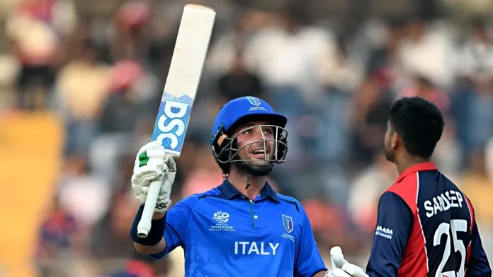 দলটিতে কেউ ট্যাক্সি ড্রাইভার, কেউ শিক্ষক। পেশাদার ক্রিকেটারই বা ক’জন! তবুও প্রথমবার টি-টোয়েন্টি বিশ্বকাপ খেলতে এসে ইতিহাস গড়লো ফুটবলের দেশ ইতালি।মুম্বাইর ওয়াংখেড়ে স্টেডিয়ামে নেপালকে ১০ উইকেটের বিশাল ব্যবধানে হারিয়ে দিয়েছে ইতালিয়ানরা। দুই ভাই জাস্টিন মস্কা ও অ্যান্টোনি মস্কার ব্যাটে ভর করে মাত্র ১২.৪ ওভারেই (৪৪ বল হাতে রেখে) জয়ের লক্ষ্যে পৌঁছে যায়।ওয়াংখেড়ে স্টেডিয়ামে টস জিতে ফিল্ডিংয়ের সিদ্ধান্ত নেন ইতালি অধিনায়ক হ্যারে ম্যানেন্তি। আমন্ত্রিত হয়ে ব্যাট করতে নেমে নেপালি ব্যাটাররা দাঁড়াতেই পারেনি ইতালিয়ান বোলারদের সামনে। শুরু থেকেই নিয়মিত বিরতিতে উইকেট হারাতে থাকে নেপাল। ৫ রান করে আউট হয়ে যান কুশল বুর্তেল।এরপর আসিফ শেখ এবং রোহিত পাউডেল জুটি বাধার চেষ্টা করেন। ২০ বলে ২০ রান করে আউট হন আসিফ শেখ। রোহিত পাউডেল ২৩ রান করে আউট হন। ১৭ রান করেন দিপেন্দ্র সিং আইরি। ২৪ বলে সর্বোচ্চ ২৭ রান করেন আরিফ শেখ।