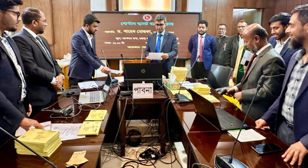 এস এম আলম, ১৩ ফেব্রুয়ারি: পাবনায় নির্বাচনী ফলাফল শেষে পাঁচটি আসনের মধ্যে বিজয়ী প্রার্থীদের নাম: পাবনা-১ জামায়াতে ইসলামী মনোনিত প্রার্থী ড.ব্যারিস্টার নাজিবুর রহমান মোমেন, পাবনা-২ বিএনপি মনোনিত প্রার্থী এ কে এম সেলিম রেজা হাবিব, পাবনা- ৩ জামায়াতে ইসলামী মনোনিত প্রার্থী মোহাম্মদ আলী আছগার, পাবনা- ৪ জামায়াতে ইসলামী মনোনিত প্রার্থী মো: আবু তালেব মন্ডল, পাবনা- ৫ বিএনপি মনোনিত প্রার্থী শামসুর রহমান শিমুল বিশ্বাস। ফলাফল ঘোষণা করেন রিটার্নিং অফিসার ও জেলা প্রশাসক শাহেদ মোস্তফা। বিশ্বে বাংলাদেশে এই প্রথমবার পোস্টাল পদ্ধতিতে ভোট কার্যক্রম সম্পন্ন হয়।