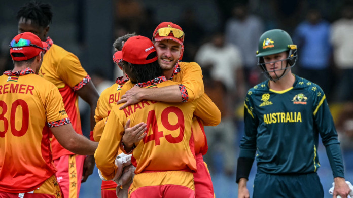 ১৯তম ওভারে ব্লেসিং মুজারাবানির শিকার হয়ে ফিরলেন অস্ট্রেলিয়ার শেষ ভরসা ম্যাট রেনশ। জিম্বাবুয়ের জয় নিশ্চিত হয়ে গেলো তখনই।৮ বলে ৩১ রান দরকার ছিল অস্ট্রেলিয়ার। হাতে ২ উইকেট। অজিরা আর পারেনি।কলম্বোতে টি-টোয়েন্টি বিশ্বকাপের ম্যাচে অস্ট্রেলিয়াকে ২৩ রানে হারিয়ে বড় অঘটনের জন্ম দিলো জিম্বাবুয়ে।অস্ট্রেলিয়ার লক্ষ্য ছিল ১৭০ রানের। ২৯ রানে ৪ উইকেট হারিয়ে বিপর্যয়ে পড়ে অস্ট্রেলিয়া। সেখান থেকে ৫৯ বলে ৭৭ রানের জুটিতে গ্লেন ম্যাক্সওয়েল আর ম্যাট রেনশ বিপদ কাটিয়ে উঠেছিলেন।কিন্তু ৩২ বলে ৩১ রানে ম্যাক্সওয়েল বোল্ড হলে ফের চাপে পড়ে অস্ট্রেলিয়া। মার্কাস স্টয়নিস, ডোয়ারসুইশরা দ্রুত ফিরে যান। শেষ পর্যন্ত ১৯.৩ ওভারে ১৪৬ রানে অলআউট হয় অস্ট্রেলিয়া।