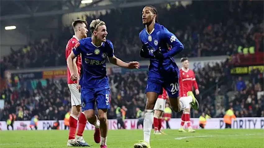 শনিবার এফএ কাপের রোমাঞ্চকর এক ম্যাচে দ্বিতীয় স্তরের দল ওয়েক্সহ্যামকে ৪-২ গোলে হারিয়ে কোয়ার্টার-ফাইনালে উঠেছে চেলসি। রেসকোর্স গ্রাউন্ডে অনুষ্ঠিত ম্যাচটি নির্ধারিত সময়ে ২-২ সমতায় শেষ হলে অতিরিক্ত সময়ে জয় নিশ্চিত করে প্রিমিয়ার লিগের দলটি।অতিরিক্ত সময়ের ৯৭তম মিনিটে কাছ থেকে জোরালো ভলিতে গোল করে চেলসিকে প্রথমবারের মতো এগিয়ে দেন আলেহান্দ্রো গারনাচো। তার শটে এতটাই জোর ছিল, বলটি পোস্টের পেছনে লেগে জালে জড়িয়ে যায়।এর আগে ৯৩তম মিনিটে লাল কার্ড দেখে মাঠ ছাড়েন ওয়েক্সহ্যামের জর্জ ডবসন, ফলে দলটি ১০ জনে পরিণত হয়। অতিরিক্ত সময়ের শেষদিকে লুইস ব্রান্ট হেডে গোল করে সমতা ফেরানোর আশা জাগালেও অফসাইডের কারণে গোলটি বাতিল হয়। পরে ১২৫তম মিনিটে জোয়াও পেদ্রোর দুর্দান্ত গোলে জয় পায় চেলসি।ম্যাচের ১৮তম মিনিটে ক্যালাম ডয়েলের লম্বা পাস ধরে দৌড়ে গিয়ে গোল করে ওয়েক্সহ্যামকে এগিয়ে দেন স্যাম স্মিথ। পরে চেলসি ভাগ্য সহায়তায় সমতা ফেরায়—গারনাচোর শট ক্লিয়ার করতে গিয়ে জর্জ থমাসনের বলটি গোলরক্ষক আর্থার ওকোনকওর গায়ে লেগে জালে ঢুকে পড়ে।৭৮ মিনিটে আবারও এগিয়ে যায় ওয়েক্সহ্যাম। কর্নার থেকে রায়ান লংম্যান বল এলাকায় ফেরালে ডয়েল তা রবার্ট সানচেজের জালে জড়ান। তবে বেশিক্ষণ এগিয়ে থাকতে পারেনি স্বাগতিকরা। জর্জ ডবসনের পিছলে যাওয়া থেকে সুযোগ পেয়ে জশ আচেমপং জোরালো শটে গোল করে ম্যাচ ২–২ করে দেন এবং খেলাটি গড়ায় অতিরিক্ত সময়ে।শেষ পর্যন্ত অতিরিক্ত সময়ে দুই গোল করে নাটকীয় জয় নিয়ে মাঠ ছাড়ে চেলসি এবং নিশ্চিত করে এফএ কাপের কোয়ার্টার-ফাইনালের টিকিট।