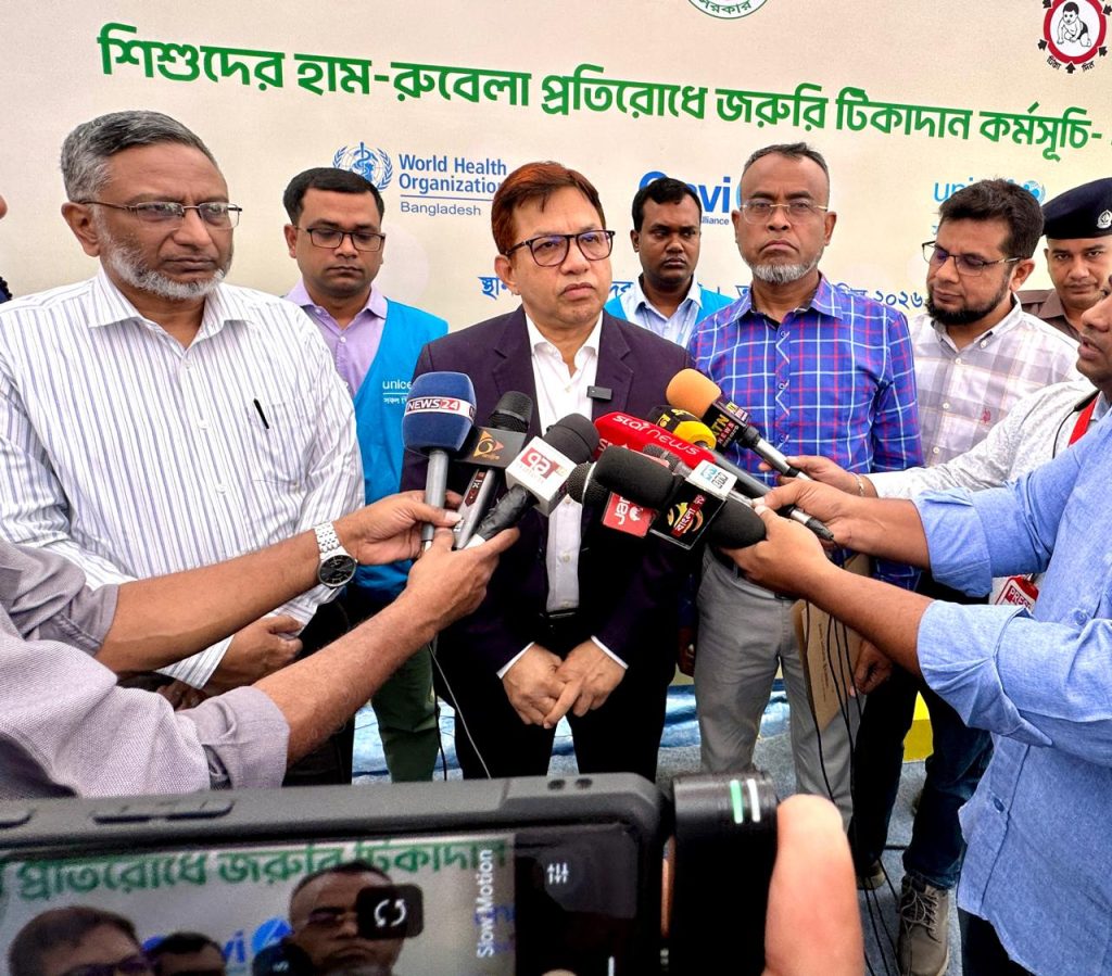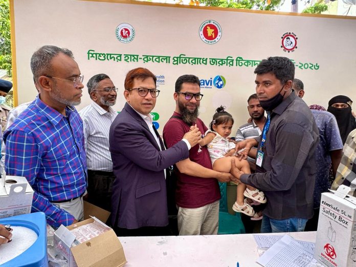 এস এম আলম, ৫ এপ্রিল: সারা বাংলাদেশের ১৮ টি জেলার মোট ৩০ টি উপজেলায় শিশুদের হাম রুবেলা প্রতিরোধে জরুরী টিকাদান কর্মসূচী শুরু হয়েছে। পাবনা জেলার ৪ টি উপজেলা পাবনা সদর, আটঘরিয়া, ঈশ্বরদী ও বেড়া উপজেলায়। পাবনা সদরের হেমায়েতপুর ইউনিয়নের চরঘোষপুর সরকারী প্রাথমিক বিদ্যালয় মাঠে এই জরুরী টিকাদান কর্মসুচী উদ্বোধন করেন স্বাস্থ্য সেবা বিভাগের সচিব মো: কামরুজ্জামান চৌধুরী। এছাড়াও উপস্থিত ছিলেন পাবনার সিভিল সার্জন ডা. আবুল কালাম আজাদ, বিভাগীয় পরিচালক স্বাস্থ্য ডা. হাবিবুর রহমান, মানসিক হাসপাতালের পরিচালক ডা. শাফকাত ওয়াহিদ, ২৫০ শয্যা বিশিষ্ট জেনারেল হাসপাতালের সহকারী পরিচালক ডা. রফিকুল হাসান রিমন, সদর উপজেলার উপজেলা স্বাস্থ্য ও পরিবার পরিকল্পনা কর্মকর্তা ডা. জান্নাতুল ফেরদৌস বৈশাখী, ডেপুটি সিভিল সার্জন, মেডিকেল অফিসার সিভিল সার্জন অফিস ও মেডিকেল অফিসার পাবনা সদর উপজেলা, বিশ্ব স্বাস্থ্য সংস্থার প্রতিনিধি ডা. একেএম কামরুজ্জামান ও ডা. রাশিদুল বারী, ইউনিসেফ প্রতিনিধি ডা.পঙ্কজ ভোমিক, ডা.বিকাশ দাশ ও পরিবার পরিকল্পনা কর্মকর্তা পাবনা সদর সহ বিভিন্ন প্রেস মিডিয়ার সাংবাদিকবৃন্দ। বিশ্ব স্বাস্থ্য সংস্থা, ইউনিসেফ ও গ্যাভি এর সহযোগিতায় এই জরুরী টিকাদান কর্মসুচীতে ৬ মাস থেকে ৫৯ মাস বয়সী বাচ্চাদের টিকা প্রদান করা হচ্ছে।