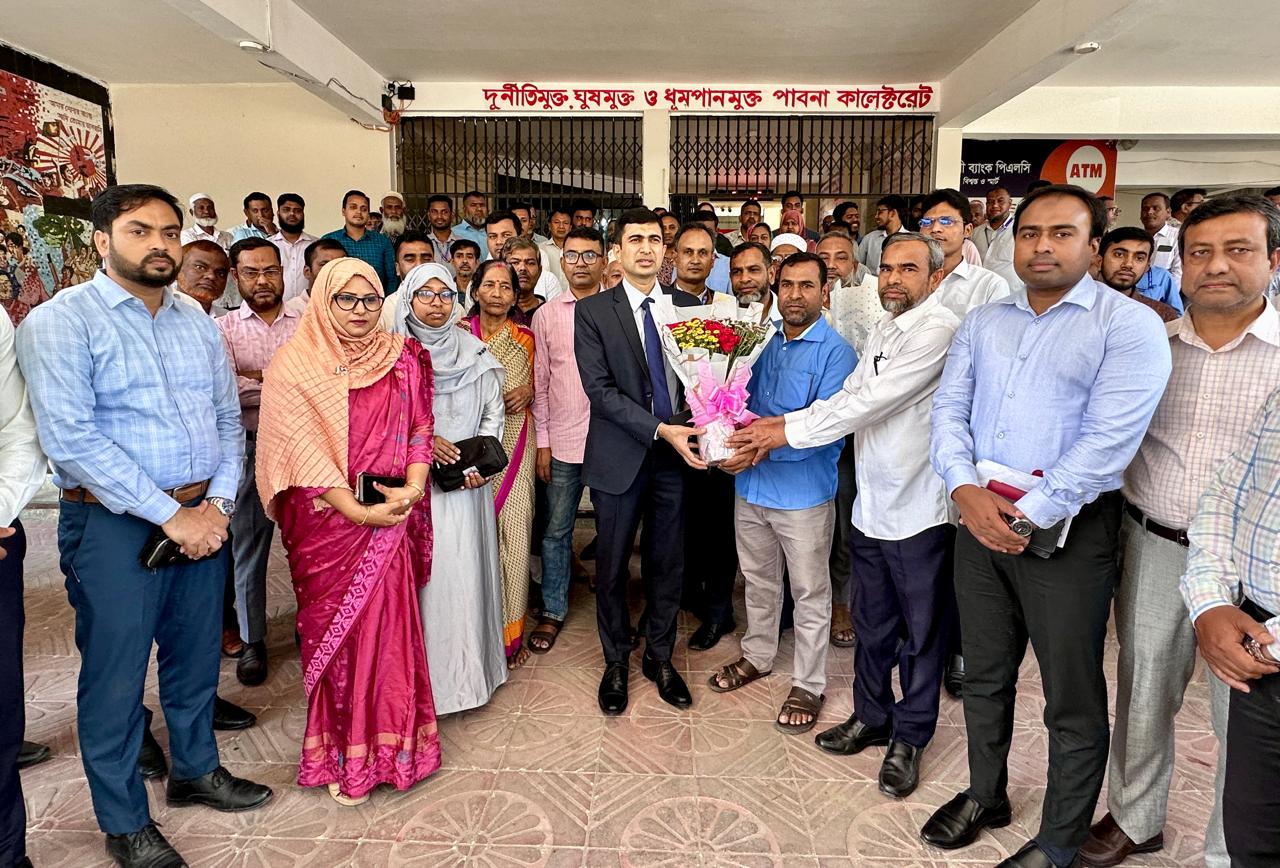 এস এম আলম, ৭ এপ্রিল: পাবনায় যোগদান করেছেন নবাগত জেলা প্রশাসক আমিনুল ইসলাম। যোগদানের পর সকালে জেলা প্রশাসকের কার্যালয়ে তাকে ফুলের শুভেচ্ছা প্রদান করেন জেলা প্রশাসনের কর্মকর্তা-কর্মচারীগণ, বাংলা টিভির জেলা প্রতিনিধি ও অনলাইন পত্রিকা ’নতুন চোখ’ এর প্রকাশক এস এম আলম সহ প্রশাসনের উর্ধতন কর্মকর্তাবৃন্দ।