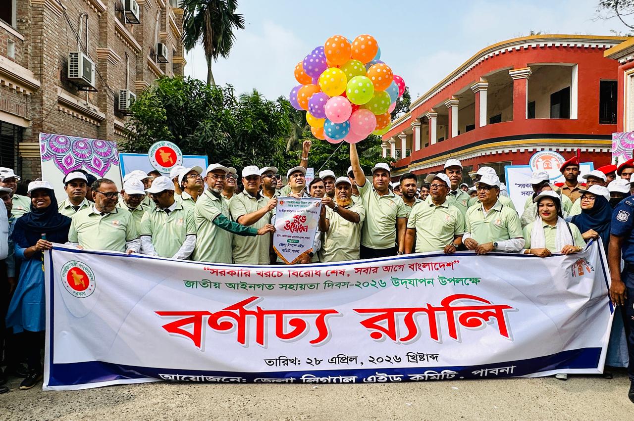 এস এম আলম, ২৮ এপ্রিল: ”সরকারি খরচে বিরোধ শেষ, সবার আগে বাংলাদেশ” এই প্রতিপাদ্যকে সামনে রেখে পাবনায় জাতীয় আইন সহায়তা দিবস পালিত হয়েছে। সকালে জেলা বিচার বিভাগের উদ্যোগে কোর্ট প্রাঙ্গণে বেলুন ও পায়রা উড়িয়ে দিবসটির উদ্বোধন করা হয়। পরে কোর্ট চত্বর থেকে এক বর্ণাঢ্য র্যালি বের হয়। র্যালিটি শহরের প্রধান প্রধান সড়ক প্রদক্ষিণ করে পুনরায় একই স্থানে এসে শেষ হয়। র্যালি শেষে সিনিয়র জেলা ও দায়রা জজ আখতারুজ্জামান এর সভাপতিত্বে আলোচনা সভায় উপস্থিত ছিলেন চীফ জুডিশিয়াল ম্যাজিস্ট্রেট জাহাঙ্গীর হোসেন, জেলা প্রশাসক আমিনুল ইসলাম, পুলিশ সুপার আনোয়ার জাহিদ, সিভিল সার্জন ডা. আবুল কালাম আজাদ, জেলা বারের সভাপতি মাসুদ খন্দকার সহ আদালতের বিচারক, আইনজীবী, কর্মচারী, সাংবাদিক ও এনজিও কর্মীগণ।