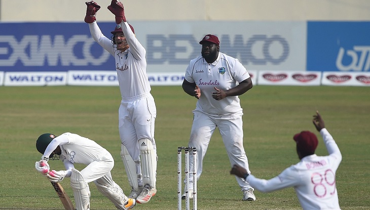 ক্যারিবীয়দের জোরালো আবেদনে আঙুল তুলে দেন আম্পায়ার। রিভিউ নিয়েও বাঁচতে পারেননি নাঈম, নবম উইকেট হারায় বাংলাদেশ। পরে প্রাণপন চেষ্টা করেও দলকে জয়ের বন্দরে নিয়ে যেতে পারেননি মিরাজ। থামতে হয়েছে জয় থেকে ১৭ রান দূরে থাকতেই।