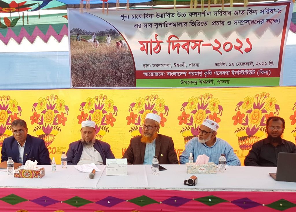 এস এম আলম, পাবনাঃ বাংলাদেশ পরমানু কৃষি গবেষনা ইনস্টিটিউট উদ্ভাবিত বিনাচাষে উচ্চ ফলনশীল সরিষা আবাদের উপর অনুষ্ঠিত হয়েছে মাঠ দিবস। বিকেলে ঈশ্বরদী উপজেলার অরণখোলা গ্রামের একটি প্রদর্শনী প্লটে আয়োজিত এ মাঠ দিবসে প্রধান অতিথি ছিলেন প্রতিষ্ঠানের মহাপরিচালক ড. মির্জা মোফাজ্জল ইসলাম।