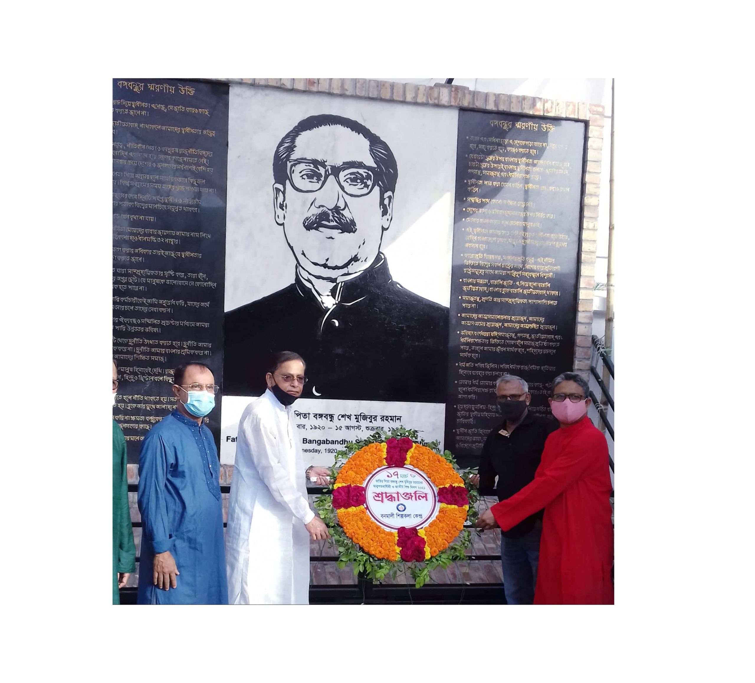 জাতির পিতা বঙ্গবন্ধু শেখ মুজিবুর রহমানের জন্মবার্ষিকী ও জাতীয় শিশু দিবস উপলক্ষে বঙ্গবন্ধুর প্রতিকৃতিতে পাবনা বনমালী শিল্পকলা কেন্দ্রের শ্রদ্ধা নিবেদন