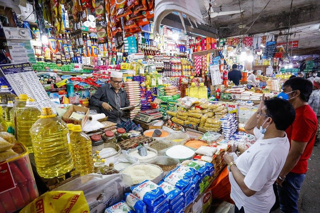 সরকার ঘোষিত লকডাউন চললেও কাঁচাবাজারে দেখা গেছে মানুষের উপচে পড়া ভিড়। করোনা থেকে সুরক্ষায় মানা হচ্ছে না স্বাস্থ্যবিধি। ফলে করোনার উচ্চ সংক্রমণের ঝুঁকি তৈরি হয়েছে এখানে।শুক্রবার সকালে মিরপুর-১ নম্বর কাঁচাবাজারে এ চিত্র দেখা গেছে।